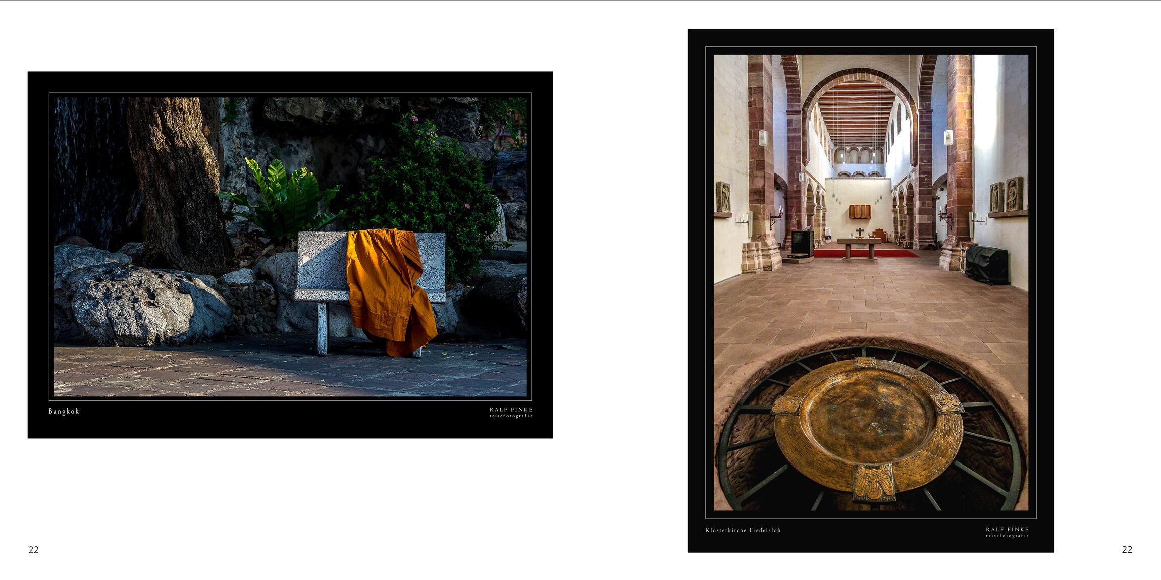 Atemberaubende Fotografien grandioser Architektur, fremdartig und doch oft vertraut. Gottes-häuser aus aller Welt und Menschen, die sie besuchen. Eindrucksvolle großforma-tige Bilder von Ralf Finke. Er kommt viel herum in der Welt - und hat seine Ausrüstung immer dabei.
