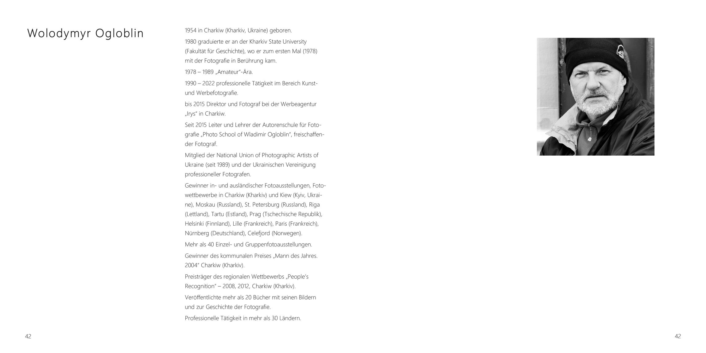 Wolodymyr Ogloblin (68), Historiker und Fotograf, stammt aus Charkiw. Er leitete zuletzt seine eigene Fotofachschule, hatte viele Ausstellungen im In– und Ausland, veröffentlichte mehr als 20 Bücher mit seinen Bildern und zur Geschichte der Fotografie.