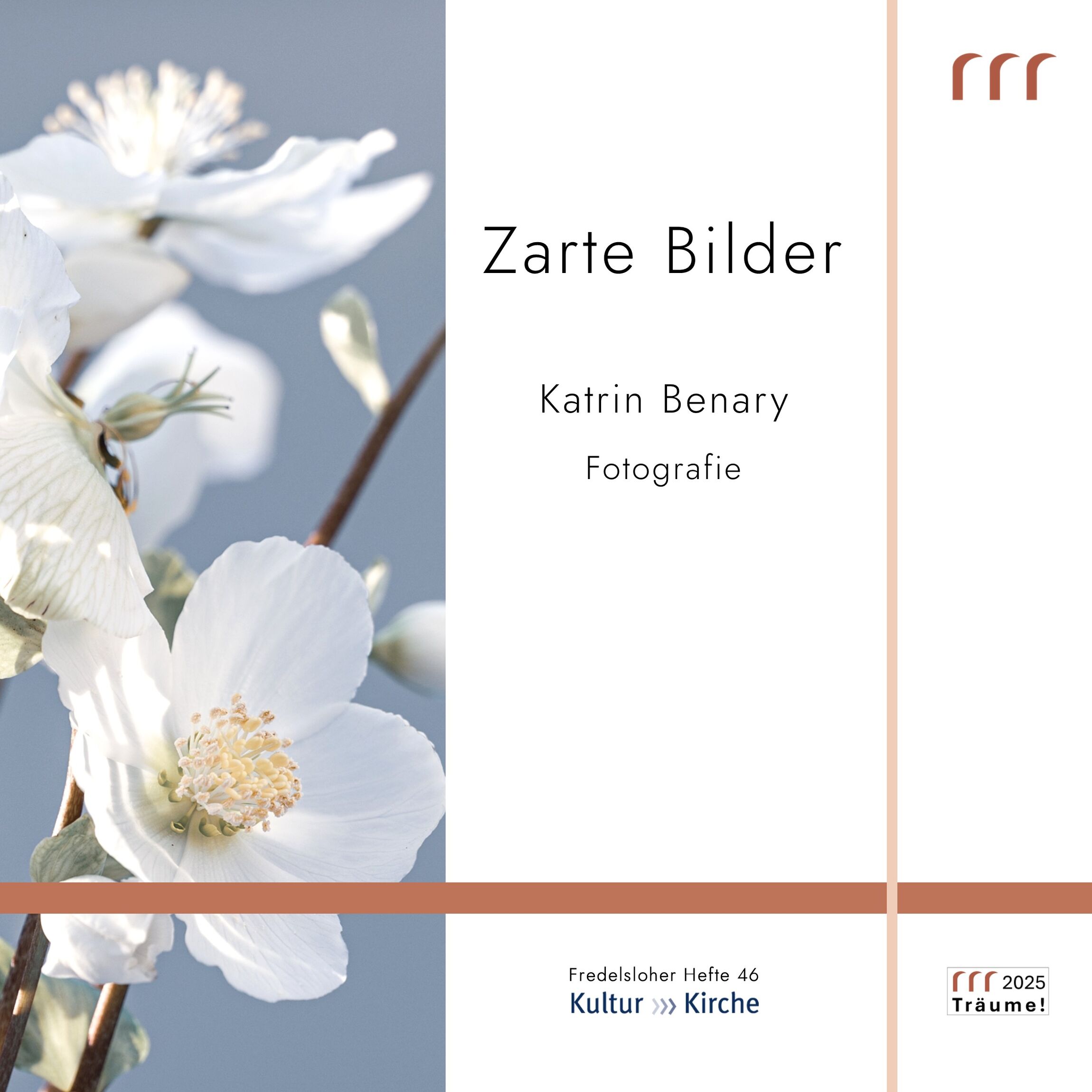 Inne halten. Fotos, die Ruhe ausstrahlen. Einladen zum Verweilen, zum sich darin Versenken. Sehr großformatige Landschaftsimpressionen. Bilder, die nur da in der Kirche hängen können und dort entsprechend zur Geltung kommen. Dazu Fotos mit Details von Blumen, stark vergrößerte Buchseiten(linien). Das Ganze erleben. In mir selbst. Wirklichkeit und Reflexionen.